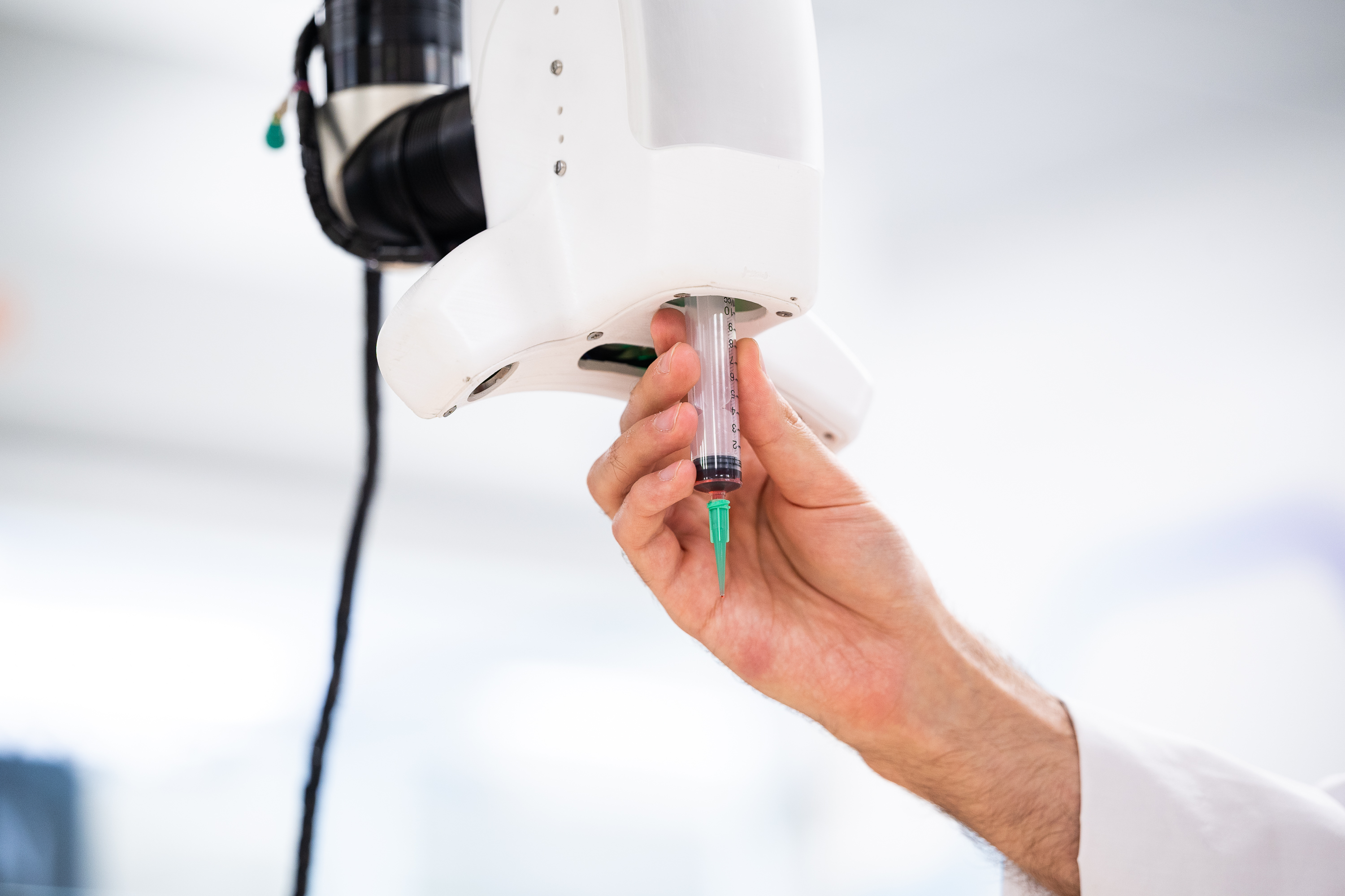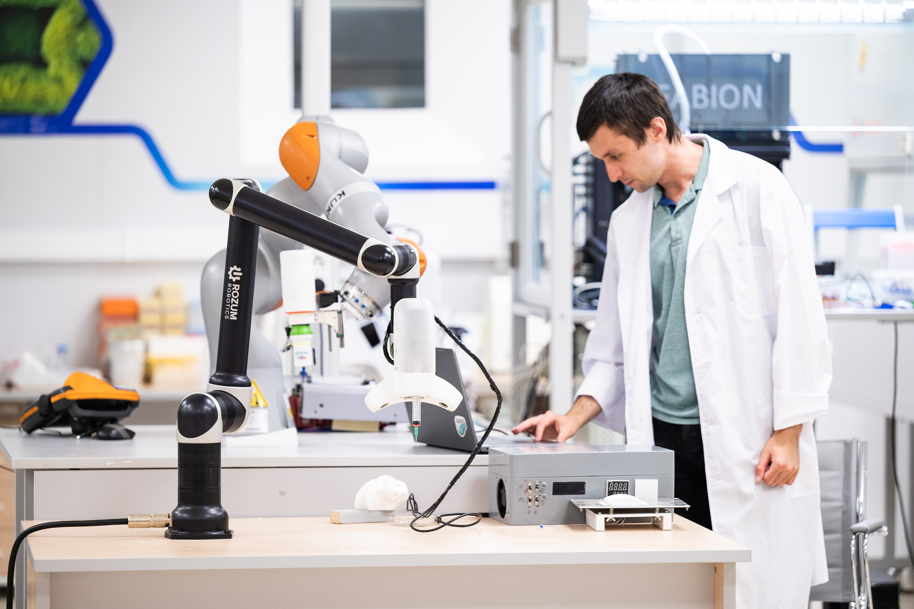 Использование робота-манипулятора позволяет осуществлять биопечать на криволинейных поверхностях с адаптацией под дыхание пациента.