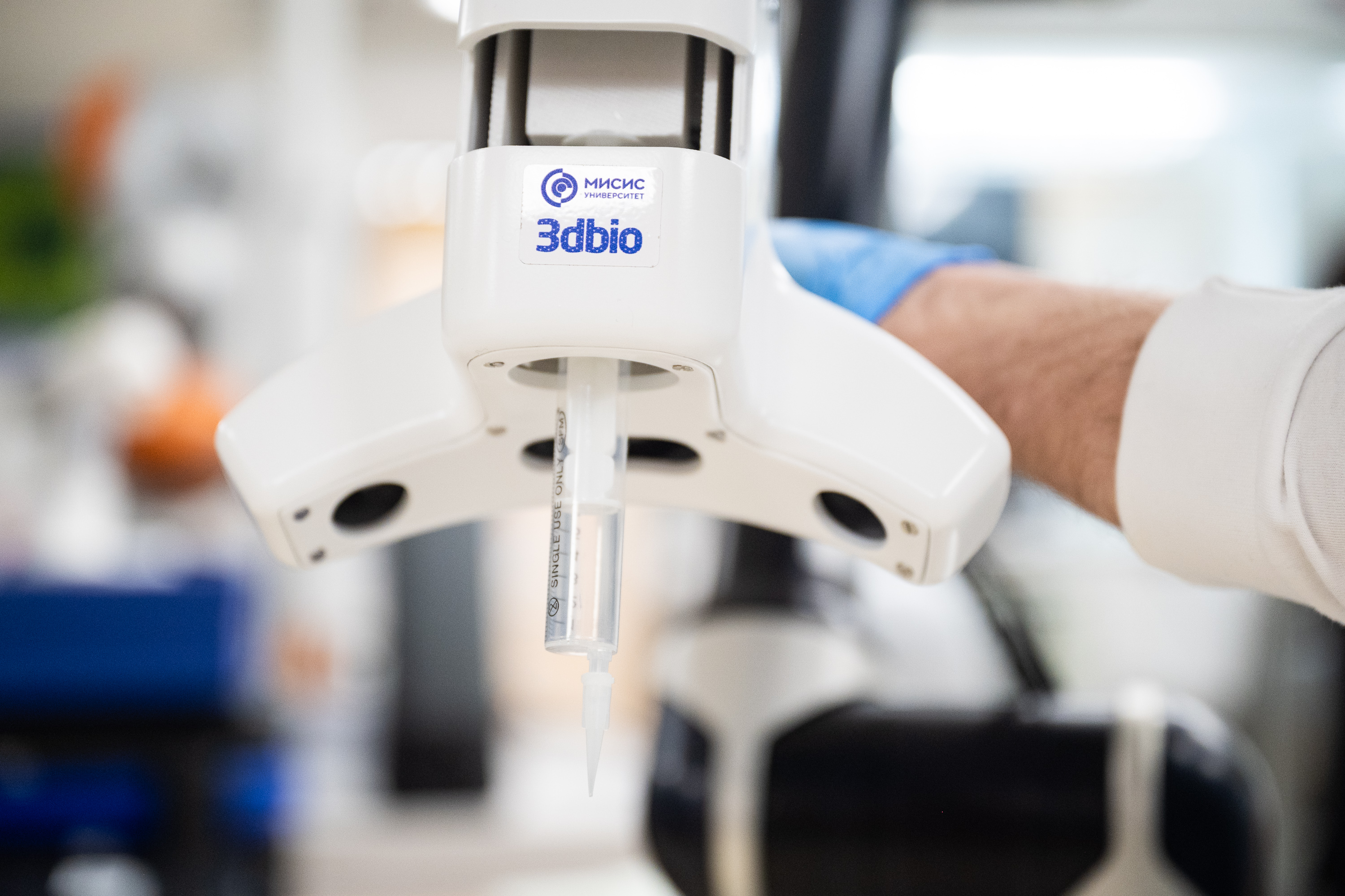 Роботическая система биопечати in situ непосредственно на тело пациента, разработанная учеными Университета МИСИС. В качестве биоматериала выступает гидрогель с добавлением клеток пациента, факторов роста и др. элементов.